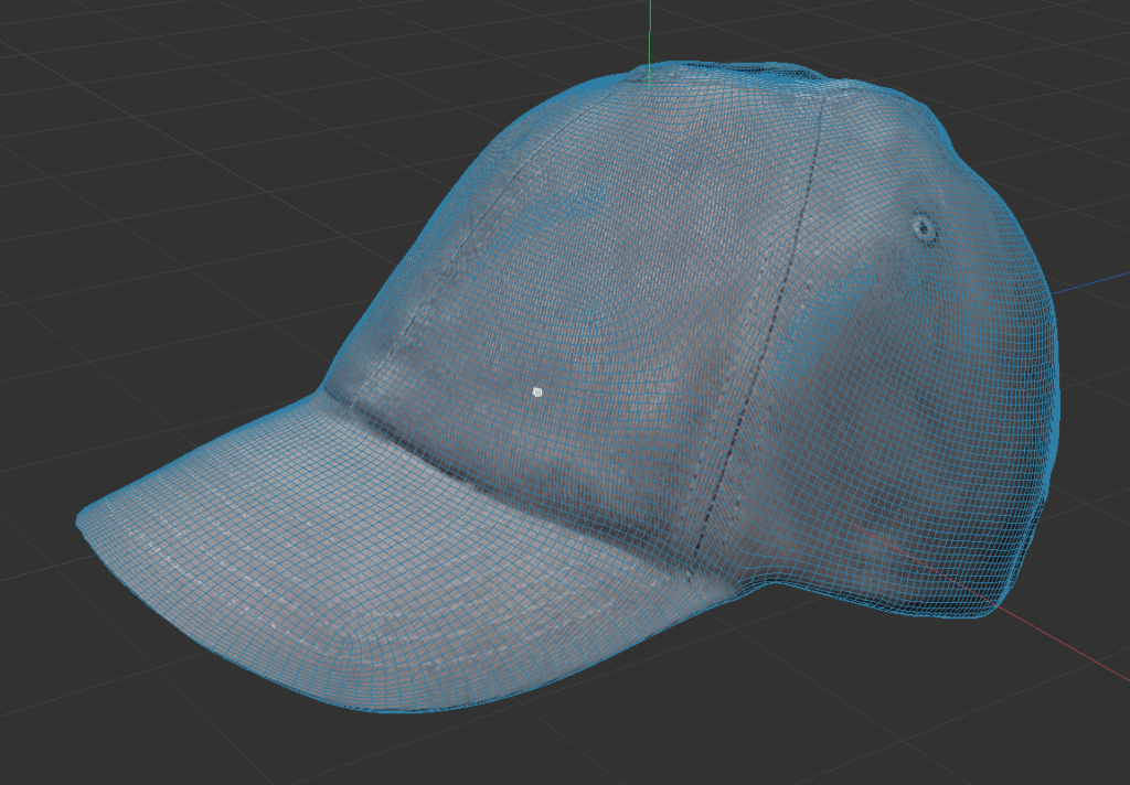 We used KIRI on an iPhone 14 pro with LIDAR. KIRI offers both free and paid plans. One trick we found is that irregardless what the app tells you, you can move the camera around, above and below to keep taking additional photos of the same angles. The more photos the merrier. The free version allows 200 photos per scan, and we aimed at around 150 photos per hat. We had 4 point lighting to light the top and the bottom of the hat all equally. Exposure should be the same to avoid any headache during texturing.